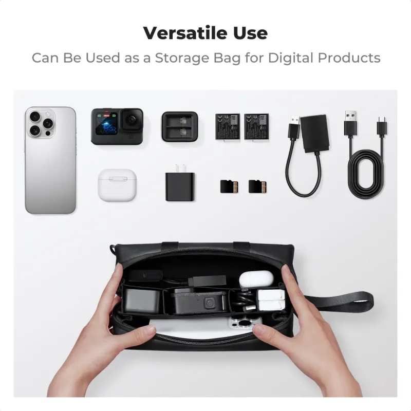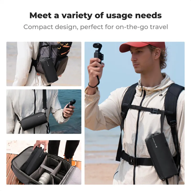 Jo kompaktiškas dydis leidžia lengvai įsidėti į kuprinę arba nešioti atskirai, todėl jis idealiai tinka vlogeriams, keliautojams ir turinio kūrėjams, kuriems reikia greito prieigos ir patikimos apsaugos.