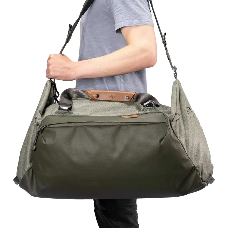 Peak Design’s ode to the timeless and utilitarian duffel bag, the Travel Duffel (now in 2 sizes) is as beautiful as it is simple. The carry-on-sized 35L Duffel is a perfect weekender, over-nighter, gym bag, or sidekick to one of our larger travel bags. The 65L Duffel is a monster gear-hauler, ruggedly dependable for airline check-in and road trips. Both bags feature removable padded top handles, a removable padded shoulder strap, 2 internal mesh pockets, and 4 external side pockets for added organization. A burly #10 weatherproof UltraZip can withstand decades of use thanks to its proprietary abrasion-resistant thread. The single zip gives high-visibility internal access. Weatherproof 100% recycled 600D nylon canvas shell with ultra-durable waterproof bottom liner. Fair Trade Certified and 100% carbon neutral.