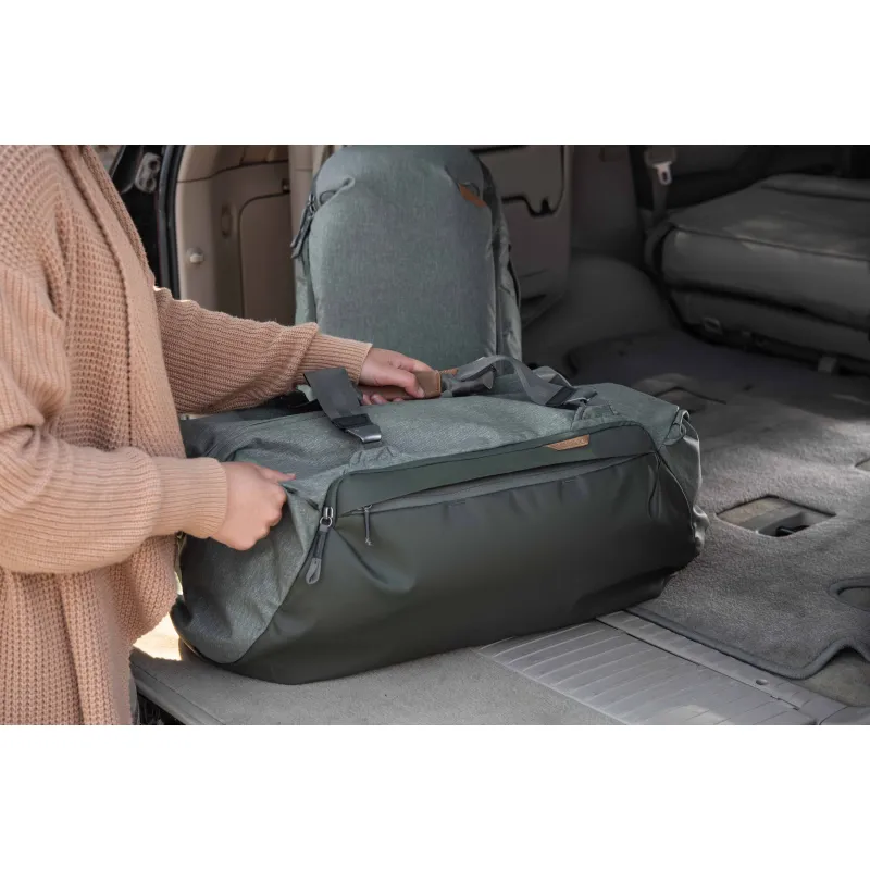 Both sizes work seamlessly with Peak Design Packing Cubes, Camera Cubes, and Pouches, sold separately. The 35L holds 3 units of Packing/Camera Cubes, the 65L holds 4 units, with tons of bonus space for additional storage.