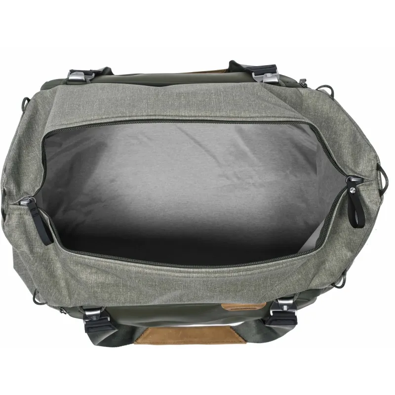 Peak Design’s ode to the timeless and utilitarian duffel bag, the Travel Duffle 35L is as beautiful as it is simple. Carry-on size with a 35L capacity, the Duffle is a perfect weekender, over-nighter, gym bag, or sidekick to one of our larger travel bags. Features removable padded top handles, a removable padded shoulder strap, weatherproof nylon canvas construction, and all-custom aluminum hardware. A burly #10 weatherproof zip gives high-visibility access to a single large volume, sized to work perfectly with our Packing Tools (sold separately). 2 internal and 4 external pockets provide added organization. Weatherproof nylon canvas shell with ultra-durable waterproof bottom liner.