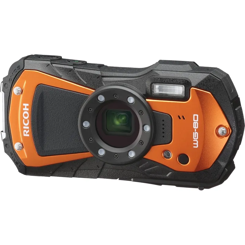 The Ricoh WG-80 features a renewed exterior design and enhanced operation. It comes with a sturdy, robust body construction and exceptional performance. It´s waterproof up to 14 meters for up to two hours, cold-resistant to -10°C and shockproof to 1.6 m and breakproof to 100 kg