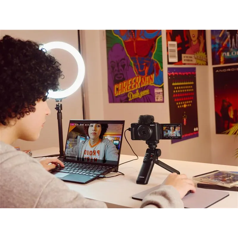 Specifically designed for vloggers and online content creators, the Sony ZV-1F Vlogging Camera is a pocket-sized camera with a large 1" sensor and a 20mm-equivalent wide-angle lens. The camera allows you to snap a group selfie with an expansive view of the background scenery and get everything in the frame, even at arm's length. The lens captures a wider field of view than the human eye, enabling you to take images with eye-popping depth and perspective both indoors and outdoors. Small and lightweight, the camera is meant to be taken out and about so you can capture everyday life with ease and grab content on the go. Featuring a flip-out 3.0" touchscreen and a directional 3-capsule microphone perfect for front-facing recording, the ZV-1F also caters to those who appreciate the camera's unique Product Showcase setting, background Defocus function, real-time Eye AF (autofocus), Face Priority AE (auto-exposure), plus a new touchscreen interface, making it easier to use.