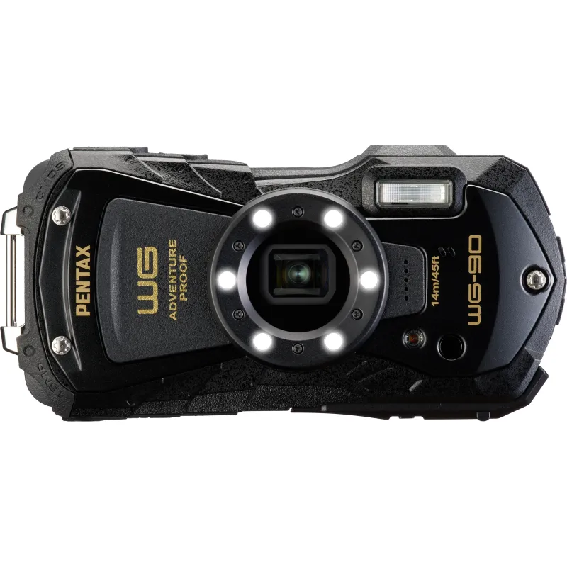 The PENTAX WG-90 is designed for serious outdoor photography, featuring dependable protective features: waterproof down to a depth of 14 meters, for up to two hours of continuous operation; dustproof against dirt and stains; shockproof against a fall from a height of 1.6 meters; crushproof against weights up to 100kgf (kilogram force), and freeze-proof against temperatures as low as -10°C. Thanks to this heavy-duty construction, the WG-90 performs superbly and dependably even in harsh, demanding outdoor conditions.
