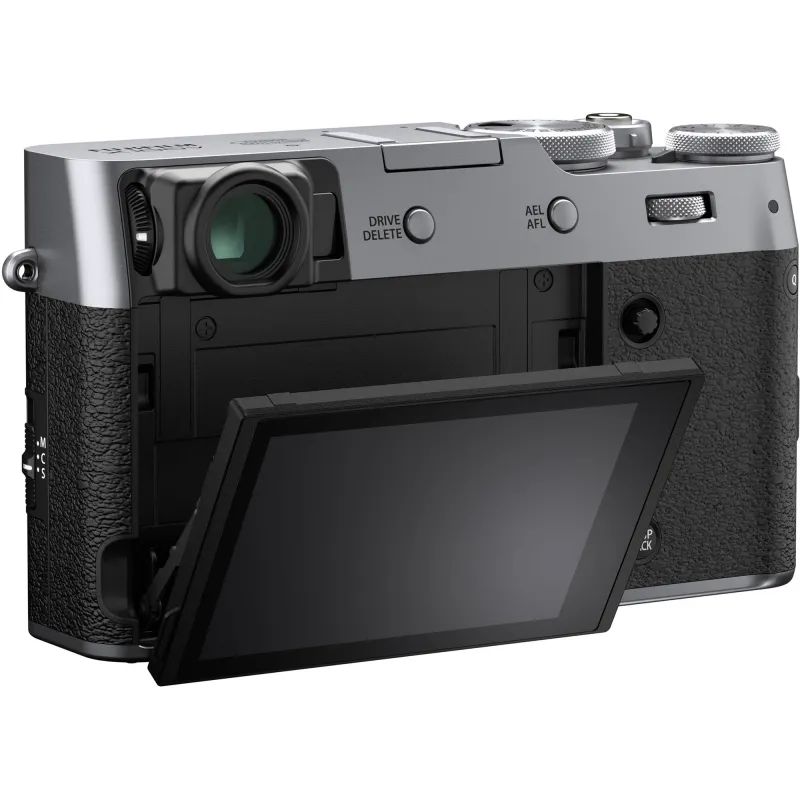 Beyond imaging, the X100V retains the tried-and-true rangefinder-inspired body design that has made this series of cameras so special. The popular Advanced Hybrid Viewfinder is used once again, but has been updated with a higher resolution 3.69m-dot OLED EVF for clearer viewing. This can still be flicked away to reveal a clear 0.52x-magnification optical finder to suit the purists' way of photographing. Complementing the finder is a 3.0" 1.62m-dot LCD touchscreen, which features a two-way tilting design to support working from both high and low angles. Additionally, built-in Bluetooth and Wi-Fi also enable wireless transferring of images to a mobile device as well as remote camera control from a smartphone or tablet.