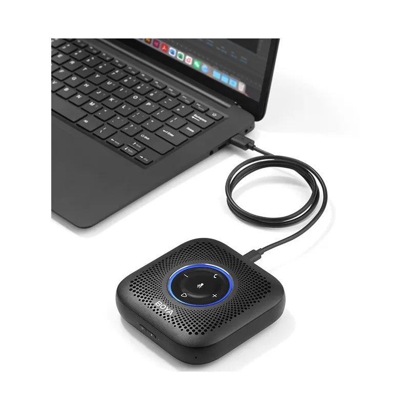 The Boya Blobby Pro, a professional condenser speakerphone with an omnidirectional polar pattern, is perfect for use with small and medium-sized teleconferencing, video conferencing, meetings, online classes, live streaming, and more. Connect your Blobby Pro to a laptop, tablet, or smartphone via Bluetooth, USB-C port, or 3.5mm TRS analog port. Compatible with Windows, macOS, and Linux operating systems, it can be used with all leading conference call services. A headphone or speaker can be connected to it for real-time audio monitoring.
