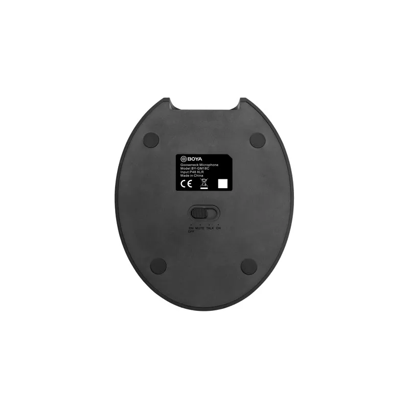 The BY-GM18C's shaft features upper and lower gooseneck sections that enable you to precisely position the capsule in front of the speaker for optimal sound. The mode switch at the bottom of the mic base allows you to switch freely in your modes: ON/OFF,MUTE,TALK and ON,Talk/mute status is clearly indicated by the LED indicator on the mic base.The BY-GM18C can be powered by 48 Phantom power.