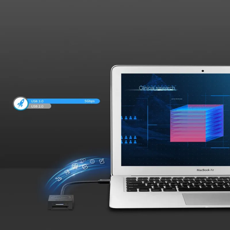 The UGREEN card reader allows data transmission of up to 5 Gb per second. It was designed for the highest data transfer speed, functionality, and compact design. It is compatible with Windows (XP...10), Mac OS, and Linux operating systems. With Plug & Play technology, no additional software is required. With the help of an additional Micro USB connector, you can connect it not only to your computer but also to your smartphone.