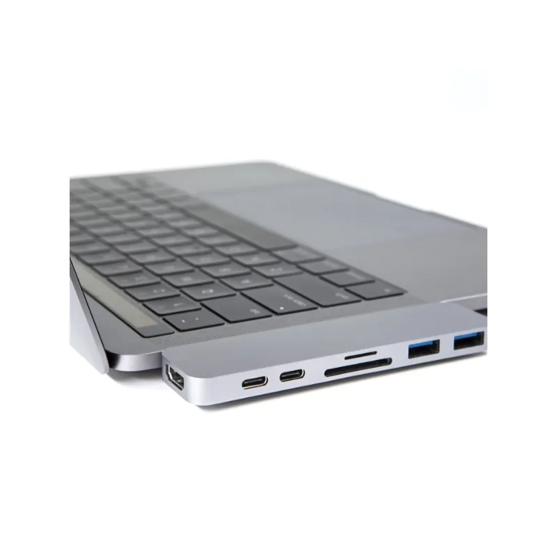 Caruba Duo Hub features HDMI, Thunderbolt 3, USB-C, SD, microSD and two USB 3.0 outputs. The adapter's aluminum housing makes it a perfect match for your MacBook Pro.