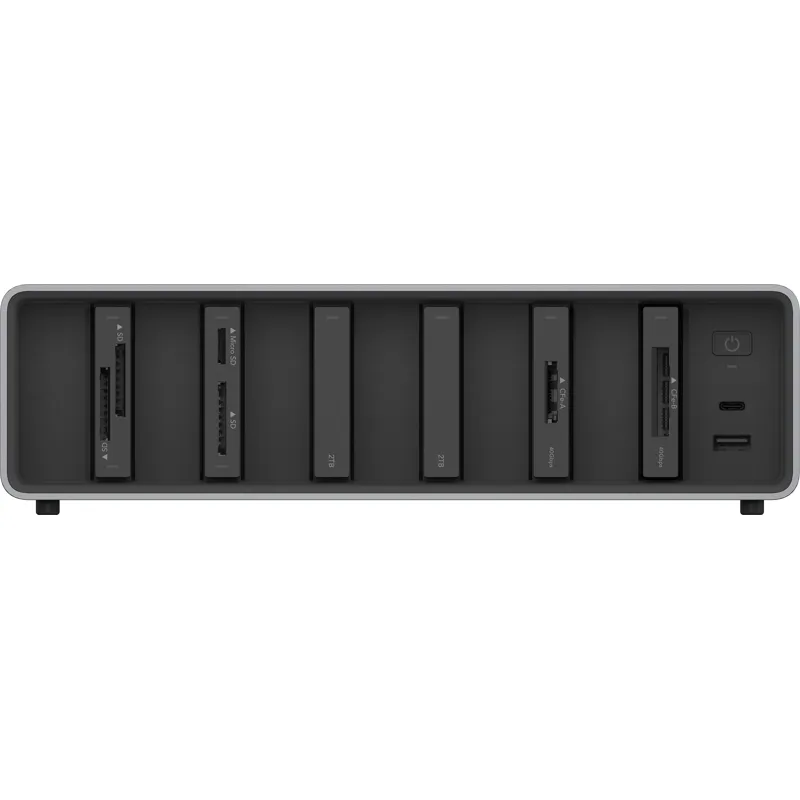 Accelerate your workflow with dual 40 Gb/s Thunderbolt 4 ports and four 10 Gb/s ports for efficient data transfer. Compatible with the latest CFexpress B and A type, UHS-II SD, and microSD cards.