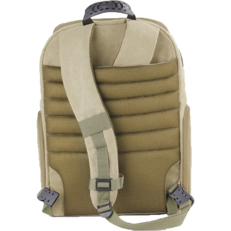 The Kalahari Kapako K-71 made of sturdy canvas is backpack and sling at the same time! So you can choose the method of wear individually. With two strap straps straight, it is portable as a normal backpack and with only one strap - which is then hung diagonally - as a sling optionally to wear over the left or right shoulder. The unused strap is simply stowed in the compartment between the back padding and the backpack. Both straps can be hidden there, ideal for transportation by car or plane. This avoids tripping hazards and protects the fasteners of the straps. The carrying function is taken over in this case by a comfortable and handy handle.