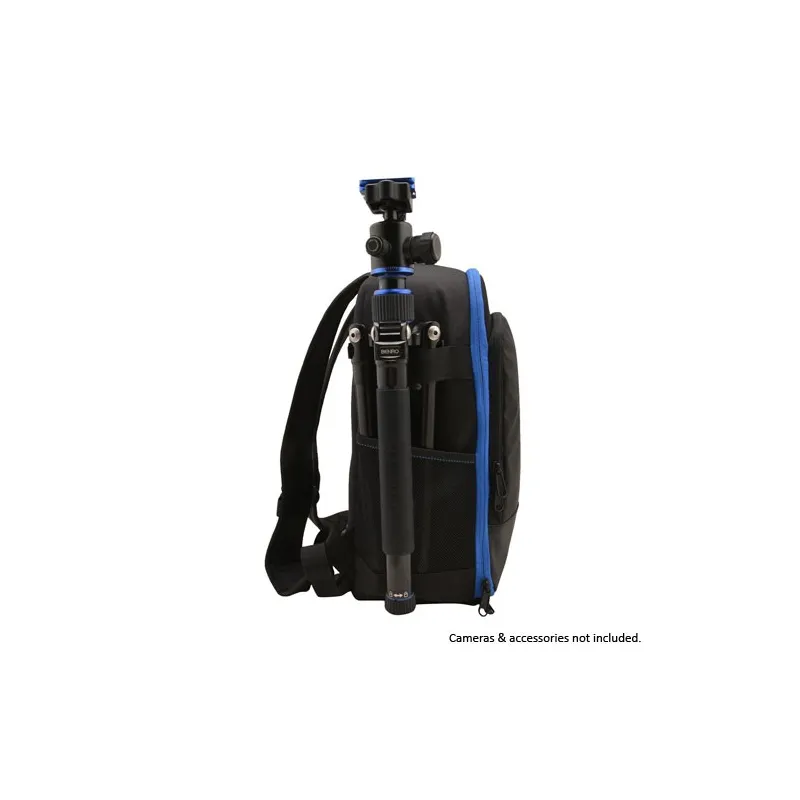 The Benro Element B200 backpack is a lightweight, entry-level carrying solution for your everyday kit. It can hold up to 2 DSLR or mirrorless camera bodies and 2-4 lenses depending on their size. The front organiser pocket has ample space for smaller accessories and personal items, even an iPad. The stretchy mesh side pockets are excellent for stashing often used items, like lens caps or filters. A handy strap on the side of the bag also lets you secure a compact tripod for easy exterior storage.