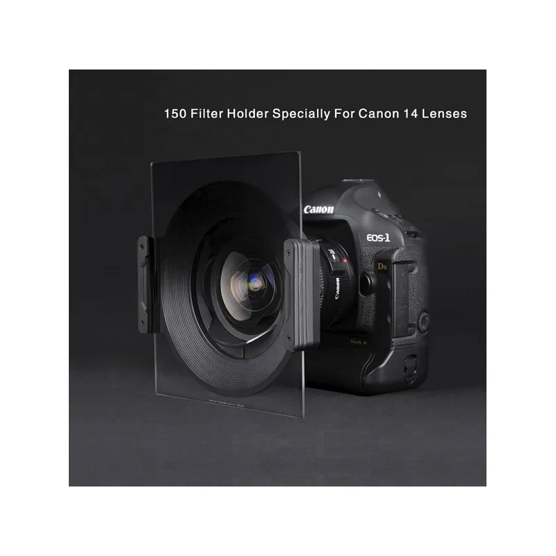 NiSi 150mm filterholder er produceret i aluminium af højeste kvalitet og i ét stykke, som bearbejdes i en CNC-maskine, og med sort matteret finish på overfladen. Skruedetaljerne er lavet af kobber beklædt med sort nikkel. Det er slidstærkt og vil minimere effekten af strejflys på billederne. NiSi 150mm filterholder til Canon EF 14mm er specielt udformet til brug med Canon EF 14mm F/2.8L II USM, men kan også bruges med andre vidvinkelobjektiver.
