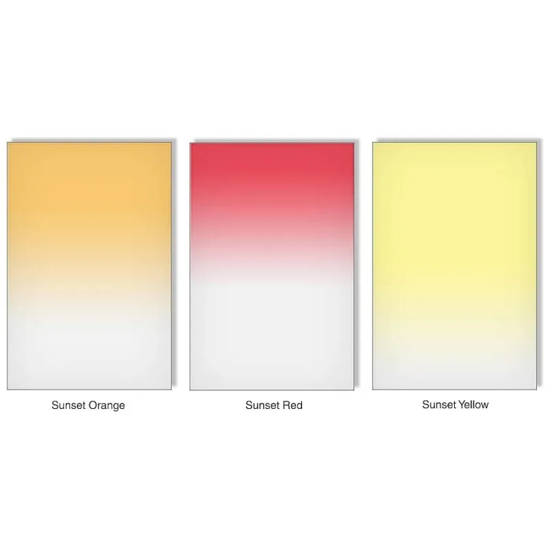 Lee color graduated filters are available with soft or hard transitions from dark to clear. The soft edge is recommended for wide angle lenses and the hard edge is recommended for normal and longer lenses.