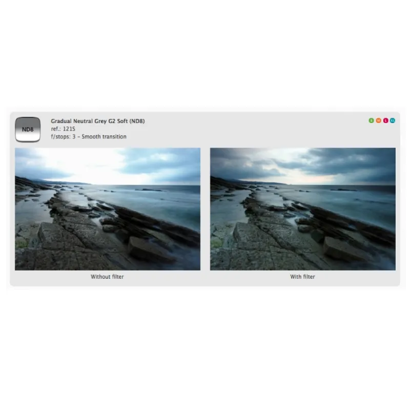 The Cokin Filter P121S Graduated Grey G2 Soft ND8 (0.9) produces a neutral soft grey gradient effect and can be used to reduce light passing through the lens onto the sensor, giving you more control over exposure and depth of field without affecting colour. Cokin filters are made of CR-39 organic glass and ensure optimal light transmission for high image quality. The filters are extremely lightweight and are highly resistant to shocks and drops. The filter measures 85 x 85mm and is compatible with the Cokin P filter holder.