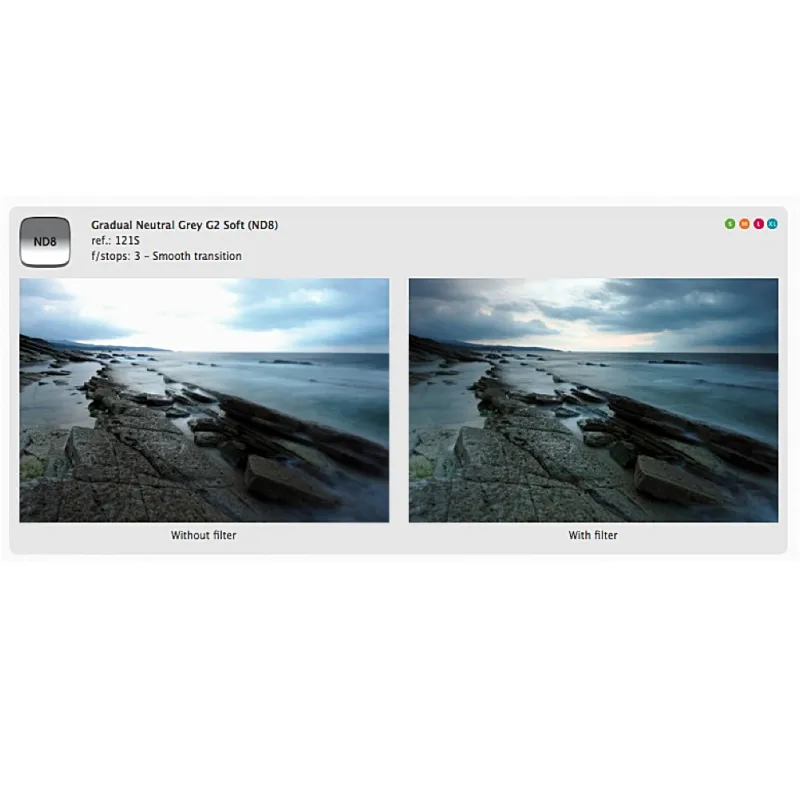 The Cokin Filter X121S Neutral Grey G2 Soft ND8 (0.9) produces a neutral grey effect and can be used to reduce the light hitting the sensor through the lens, giving you more control over exposure and depth of field without affecting colour or contrast. Cokin filters are made of CR-39 organic glass and ensure optimal light transmission for high image quality. The filters are extremely lightweight and are highly resistant to shocks and drops. The filter measures 130x170mm and is compatible with the Cokin X-Pro filter holder.