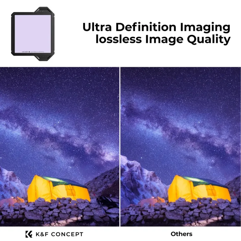 Anti-light pollution Square Filter helps to reduce the unwanted effect of light pollution, giving photographs more contrast and clarity as a result, and is equipped with Protective Frame.