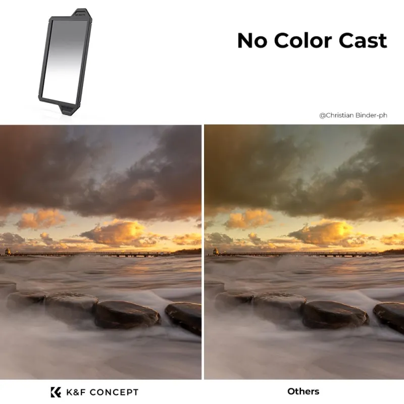 Soft GND8 Square Filter is suitable for shooting large contrast between the sky and the ground. It can effectively balance the light ratio and contrast. Ideal for Landscape Photography. Using AGC optical glass with the double-sided 28-layer coating, anti-reflective Green Film can effectively reduce the surface reflection of the filter.