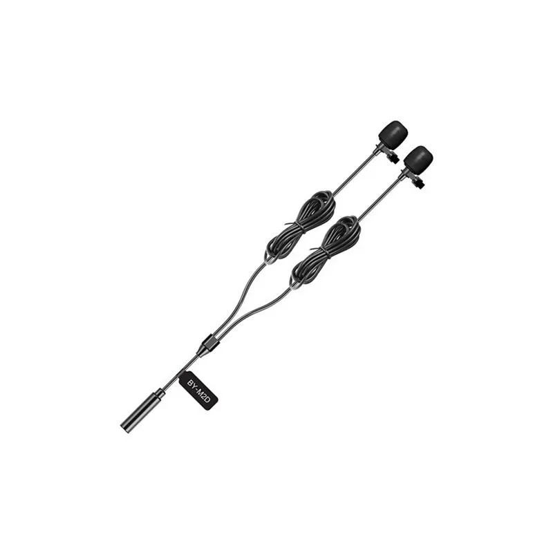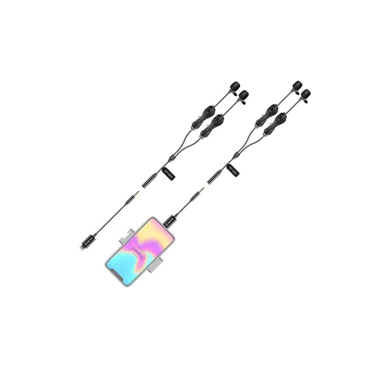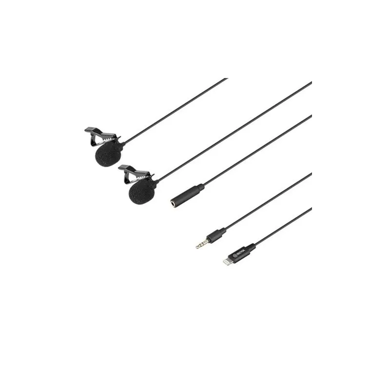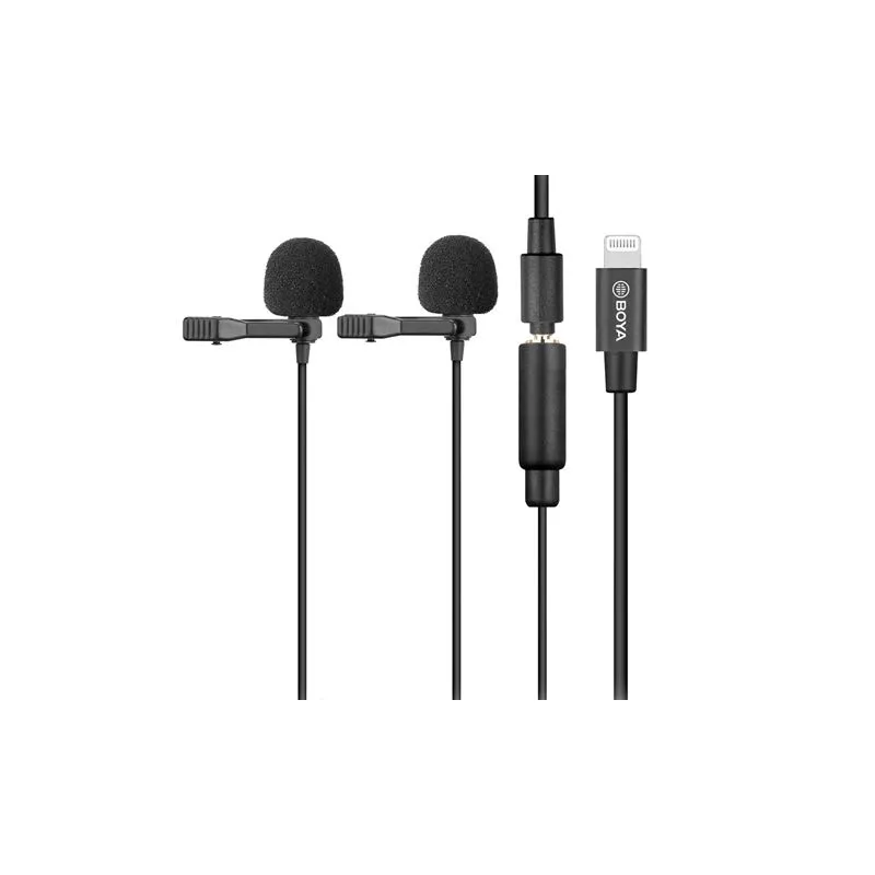 The Boya Dual Clip-on Lavalier Microphone BY-M2D for iOS is a dual omnidirectional, multi-purpose tie-play microphones and Lightning adapter. The microphone captures sounds in high quality, making it an ideal accessory for interviews, vlogs or any other situation where two voices need to be recorded, both indoors and on location. The microphone connects easily to iOS devices such as iPhone, iPad and iPod using the included Apple MFi-certified Lightning connector. The BY-M2D is compatible with iOS 8.0 or later.