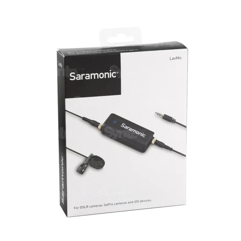 The Saramonic LavMic is an all-in-one solution for recording hands-free audio to your DSLR camera, GoPro or iOS device. It includes a 2.4m clip-on omnidirectional condenser lavalier microphone, a two channel mini jack audio mixer, and three signal transmission cables. Two 1/8 (3.5mm) mic inputs allow you to select mono or stereo output mode. The headphone jack provides real-time audio monitoring.