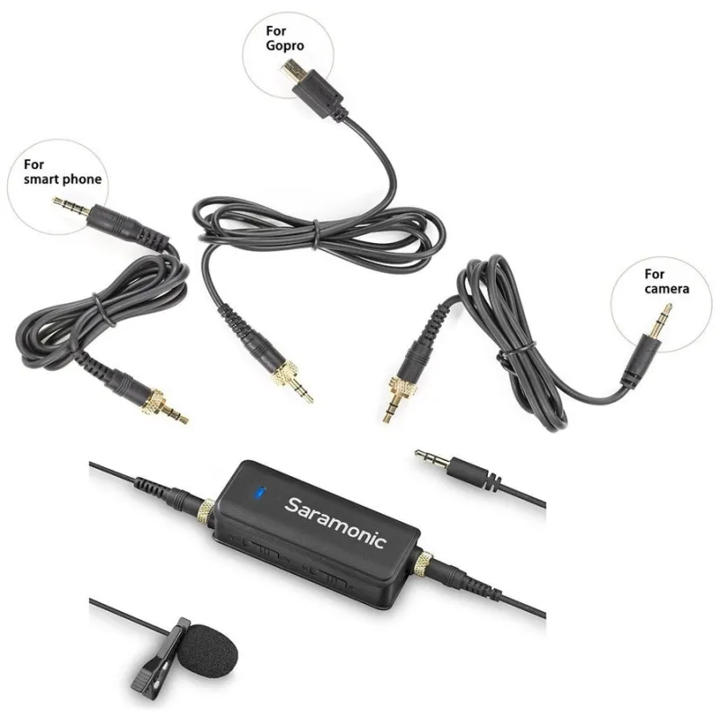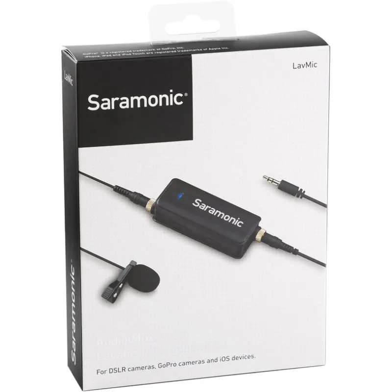 If you jump between shooting video with DSLRs, GoPros, and Apple devices, and you need an excellent sounding clip-on lavalier microphone that will work perfectly with all of them, the Saramonic LavMic is the answer. Not only does it supply broadcast-quality sound to a range of different kinds of cameras with its included wired lavalier microphone, it also features a second microphone input so you can attach an additional microphone to your device of choice.