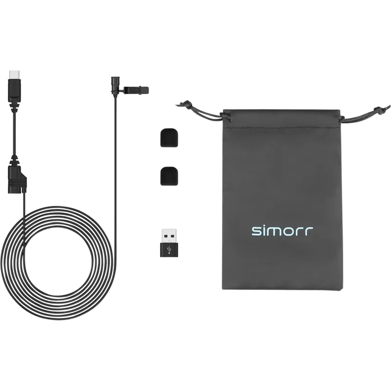 If you're looking for a compact, easy-to-use lapel microphone that connects directly to a small camera or your smartphone's USB Type-C port, the Simorr Wave L2 black lavalier microphone from SmallRig will help you capture clear sound. This microphone offers broadcast-quality sound using copper components and a shielded 6.6-inch cable, and it can record to phones, recorders, and cameras that offer a USB Type-C port. A USB Type-C to Type-A adapter is also included to allow compatibility with other equipment.