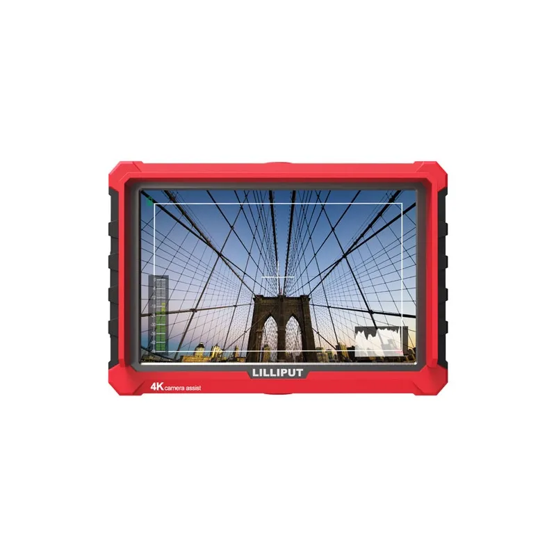 The A7S 7" Full HD Monitor with red rubber case from Lilliput features an HDMI 1.4 input, making it suitable for UHD 4K filmmaking and photography. With a 16:10 aspect ratio and 1000:1 contrast ratio, the LCD panel displays Full HD images. The HDMI loop-through function allows you to output via HDMI to any other compatible device.