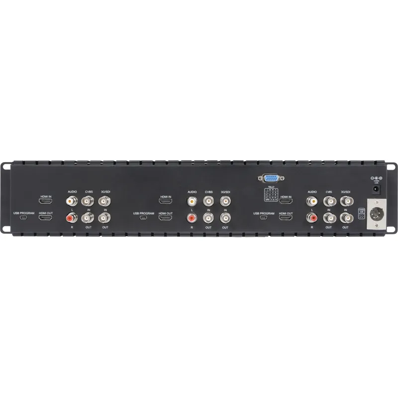 There are front TALLY lights for each screen, with 3 colors display (Red,Green,Yellow), and controlled via DB-15 ports on the rear panel.
