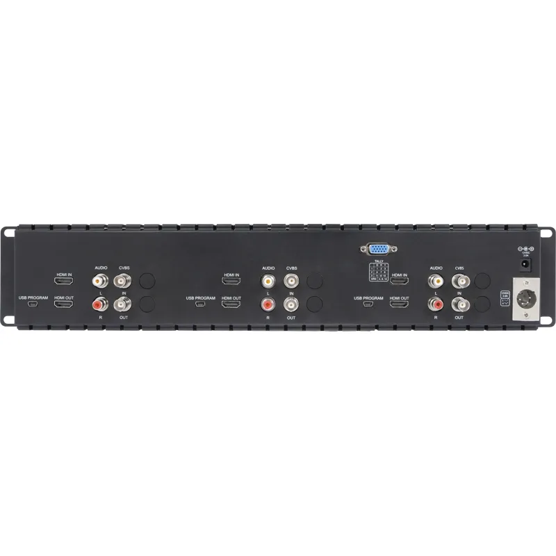 T51 are extremely thin and lightweight. 5" 2RU Rack Monitors with triple 5” 800×480 screens, viewing SD, HD video on 2RU rack monitor. FEELWORLD Rack mount LCD monitor has been widely used in all levels of TV news production, post production, programme broadcasting and TV broadcasting trucks, special vehicles video surveillance and other fields. Since this series is working with other adjacent professional equipments, therefore, the high stability, high reliability and electromagnetic compatibility are very important conditions to make sure the whole system work smoothly.