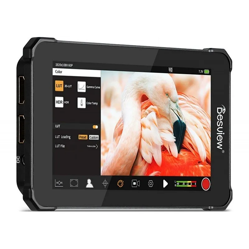 The Desview V5 monitor allows not only viewing, but also recording and playing back video footage stored on a memory card. The device supports FullHD resolution and input signal transmission with a maximum resolution of 4096 x 2160p. The touch screen provides convenient operation of functions, among which there are such solutions as: HDR, gamma correction, color temperature adjustment, False Color, Histogram, Vectroscope, Waveform, Zebra and Peaking. 2800 nits of brightness and 99.5% coverage of the DCI-P3 color space guarantee excellent image quality. Desview V5 offers the ability to upload 150 custom LUT presets. Various power options allow for convenient operation both in the studio and outdoors. The housing made of high-quality aluminum guarantees durability and lightness. Main Product Features view monitor with recording function equipped with a 5.5 "LED touchscreen possibility to record video footage in MP4 format on a memory card playback function of stored videos impressive brightness of 2800 nits 99.5% coverage of the DCI-P3 color space native resolution of 1920 x 1080 px (FullHD) offers input signal transmission with a maximum resolution of 4096 x 2160p @ 24 Hz equipped with HDMI 1.4 output and input includes HDMI / micro HDMI and HDMI / mini HDMI cable support for HDR mode / gamma correction / color temperature adjustment tools for easy control of the captured image (False Color, Single Color, Histogram, Vectroscope, Waveform, RGB Waveform, Zebra, Peaking) support for various aspect ratios (including anamorphic image) adjustment of image brightness, contrast, sharpness and saturation grids, screen markers and safe area support for 3D LUT arrays in CUBE format possibility to upload 150 custom 3D LUT presets 3 programmable function buttons 3 power options - power supply (DC 7 - 24 V), NP-F battery or V-Mount battery (D-Tap cable included) housing made of high-quality aircraft-grade aluminum 3.5mm mini jack headphone output 2 female 1/4" threads for vertical or horizontal monitor installation cold shoe mount included (convenient installation on camera or mount) also included: SD card (32 GB), microSD / SD memory card adapter, Allen wrench and microfiber cloth Ultraight touchscreen The Desview V5 preview monitor is equipped with a 5.5" touch screen. Its brightness is as high as 2,800 nits, which ensures a clear image even when you work in bright sunlight. With 99.5% coverage of the DCI-P3 color space and 10-bit color depth, the Desview V5 accurately reproduces what you want to show in your videos, providing exceptional natural image quality. Video Recording One of the most important advantages of the Desview V5 preview monitor is the recording function. You can not only control the recorded image in real time, but also save it to a memory card. The monitor supports recording in MP4 format with a maximum resolution of FullHD, which guarantees high image quality. Your video footage will be automatically divided into files with a maximum size of 3.6 GB. Desview V5 is a reliable way to backup. Saved videos will be stored not only in the camera or camcorder, but also on additional media (32 GB memory card included). In case of failure or data loss, the backup will let you rest easy. Video playback The Desview V5 monitor is not only a high-quality preview and the ability to record video footage on a memory card. You can use the device as a portable movie player. With the option to view content saved in MP4 files, you can instantly run video footage and check whether the shot recorded moments earlier meets all your expectations. This will save you valuable time on set and quickly make the necessary doubles if necessary. Top performance quality The Desview V5 preview monitor is distinguished by its high build quality. The sturdy housing is made of aircraft-grade aluminum, which ensures optimal light weight (318 g), as well as scratch and drop resistance. This gives you the assurance that the monitor will stay with you for many years. Specially contoured corners are an additional protection against accidental bruises. The modern design makes the device fit perfectly into the aesthetics of professional tools used on film sets. Multiple power ways The Desview V5 preview monitor will work well both in the studio and outdoors. This is because the device supports multiple power ways. If you have an electrical outlet nearby, reach for an AC adapter. And when you're working outdoors or want to avoid tangled cables, use an NP-F battery pack (NP-F550, NP-F750 or NP-F970). You will plug the cell into a special socket with a solid locking mechanism. You will also find a D-Tap cable included with the monitor, which will allow you to connect the device to a V-Mount battery pack. Power supply or batteries MUST be purchased separately. Preview with color correction (3D LUT) The Desview V5 preview monitor enables the use of 3D color tables. This means that already at the recording stage you will apply so-called LUTs, effects that can be compared to filters, which are responsible for color correction of video images. The device has its own library of ready-made presets, but the possibilities of the Desview V5 do not end there. Thanks to a memory card, you can upload as many as 150 custom 3D LUTs to the device, which will allow you to test a professional "film look" on the preview or experiment with unique image styling, even before you start the editing and post-production stage. Fast Exposure Level Assessment The Desview V5 preview monitor offers a variety of tools to help you better evaluate exposure levels while working with your camera or camcorder. Using the "Zebra", "False Color" and "Single Color" modes, you can easily determine which elements of the frame are too bright and which are too dark. These tools will come in handy wherever poor lighting conditions prevent you from accurately assessing the exposure of, among other things, the skin or faces of the filmed characters. Perfect-framing Working 