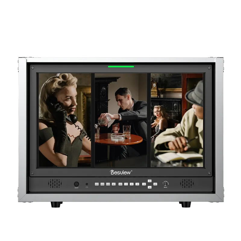 The D21 Broadcast Monitor features versatile vertical screen monitoring with corner supports. The UI menu can be adjusted for horizontal or vertical orientation, catering to various shooting scenarios. It supports single, dual, triple, or quad screen setups, including picture-in-picture mode for diverse monitoring needs.