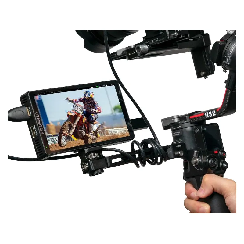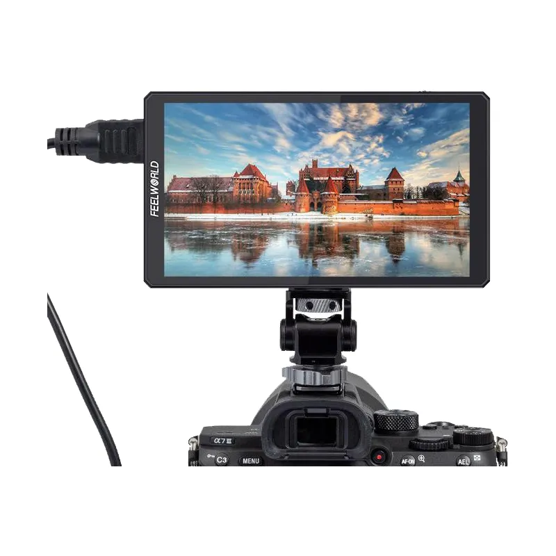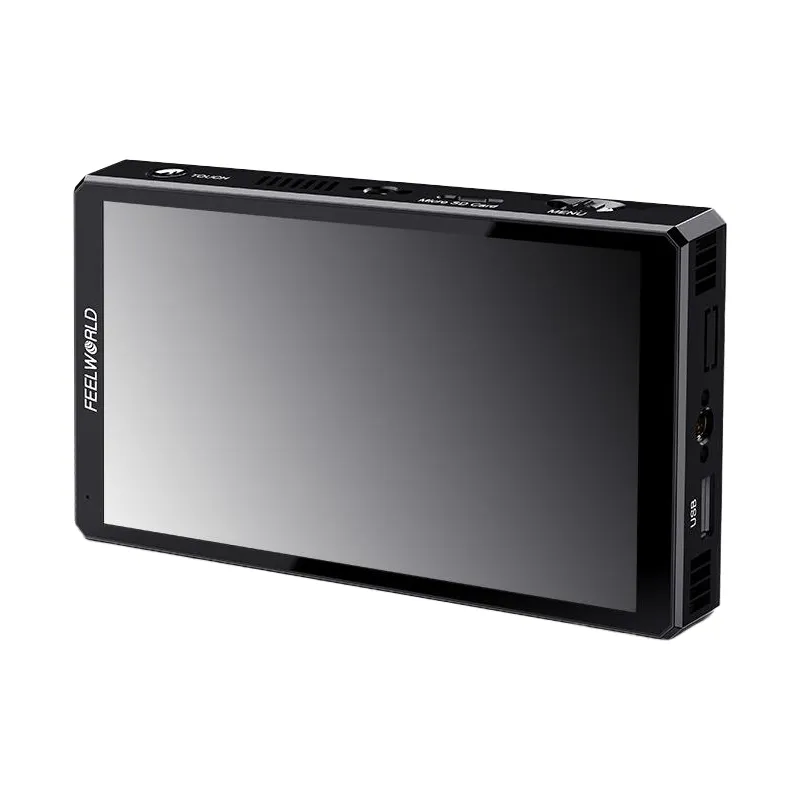 Use the FeelWorld CUT6S 6" 4K HDMI Touchscreen Recorder/Monitor to both view and capture 3G-SDI or HDMI video. This onboard monitor supports up to 1080p60 input and output via SDI and UHD 4K60 input and 1080p60 output via HDMI with the ability to view an applied LUT. The CUT6S can power select cameras via its 8.4V barrel output. The CUT6S features a 6" 1920 x 1080 touchscreen display, one 3G-SDI input, one 3G-SDI output, one HDMI 2.0 input, and one HDMI 1.4 loop output supporting up to 1080p60 resolution video. A 3.5mm headphone jack is also provided for audio monitoring on set.
