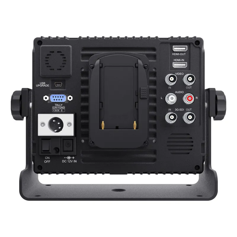 The monitor's frame is constructed from a very strong aluminum alloy and features standard 1/4" threads on the left, right and bottom edges. In addition, the monitor comes with a removable sun panel. Feelworld monitors also have a flexible power supply system: they come standard with a plate for F970 batteries, and can optionally be equipped with plates for D28S/D54, LP-E6, U60 batteries or an adapter for a mains power supply. Battery/charger not included.