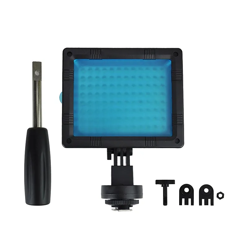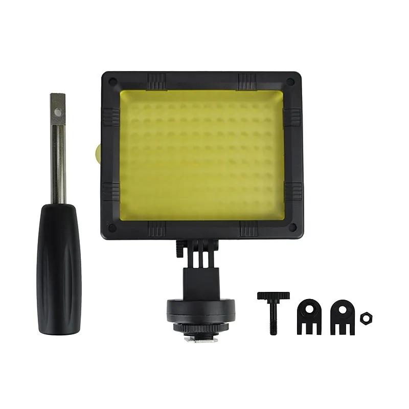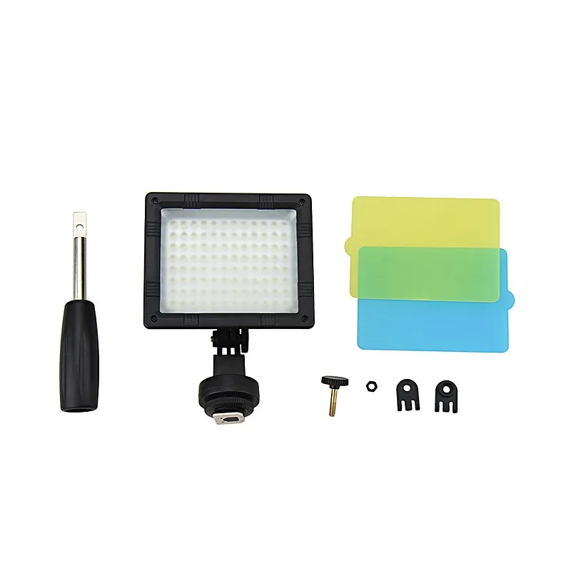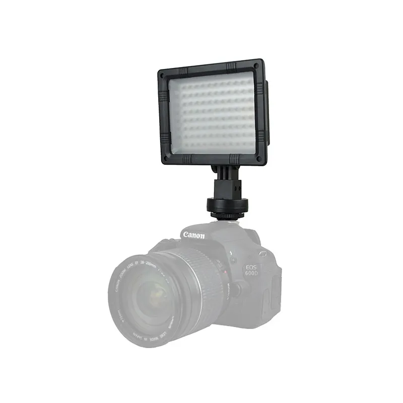 In addition, a handle is included that allows you to hold the video light in your hand, this gives you more flexibility and control over lighting. Thanks to its unique design and universal hotshoe mount, the LED-96 is the ideal choice for lighting in video and photography.
