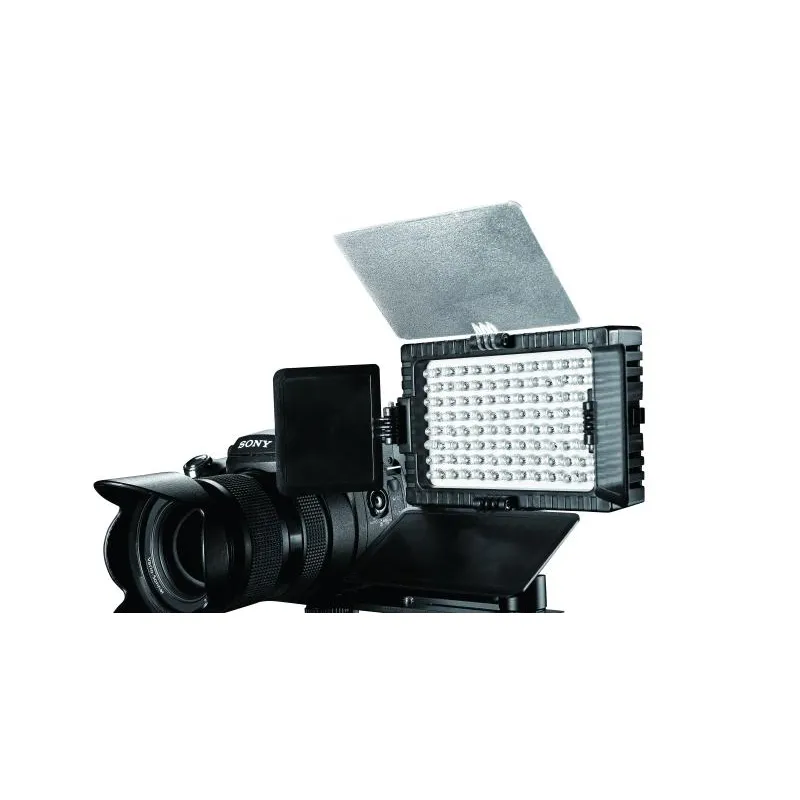 ;The LED lamp is delivered with a mounting bracket enabling you to place the DV-96V-K1 above your camera. Also included is a white coloured filter to create a diffuse effect, an orange coloured filter to add warmth to your images and a tilting bracket enabling you to tilt the LED light in the correct position.