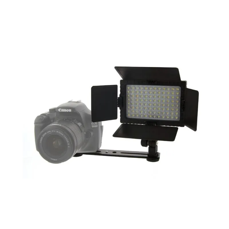 The LED lamp is delivered with a mounting bracket enabling you to place the DV-160V-K2 next to your camera. Also included is a white coloured filter to create a diffuse effect, an orange coloured filter to add warmth to your images, a tilting bracket enabling you to tilt the LED light in the correct position and a battery holder suitable for 6 AA penlite batteries.