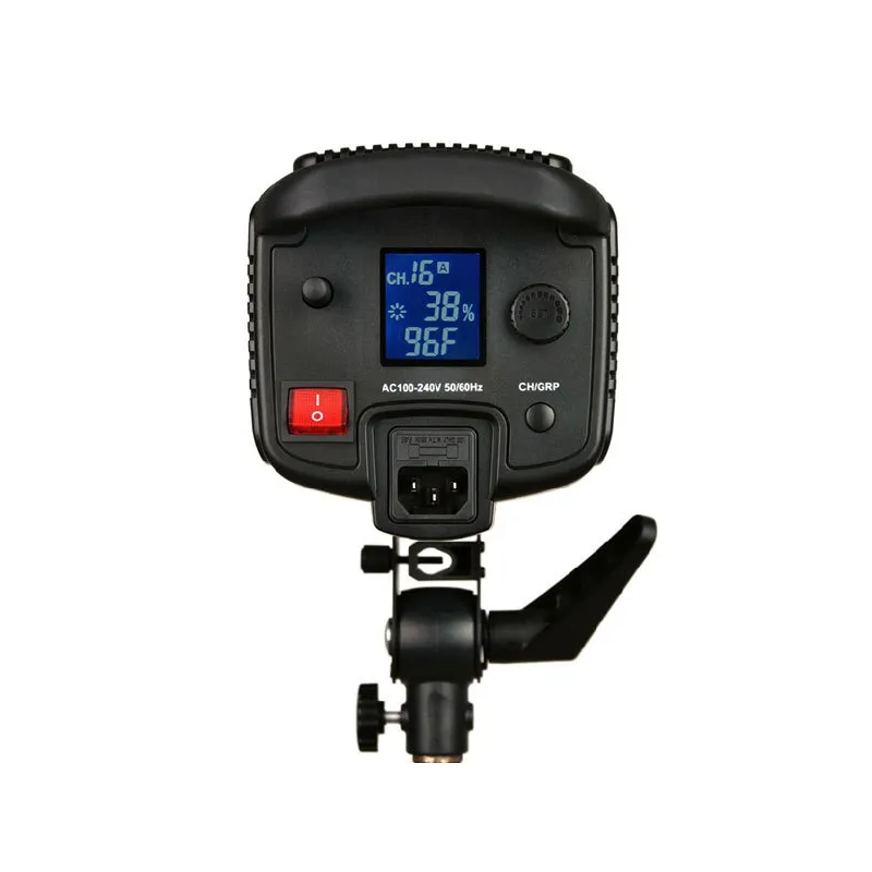 The display on the back clearly shows the most current settings. In addition, the last used settings are automatically saved by the SL100Y. The versatility of the lamp is made possible by the Bowens-S bayonet mount, which makes it possible to attach all kinds of light distorters to the lamp. There is also an umbrella holder.