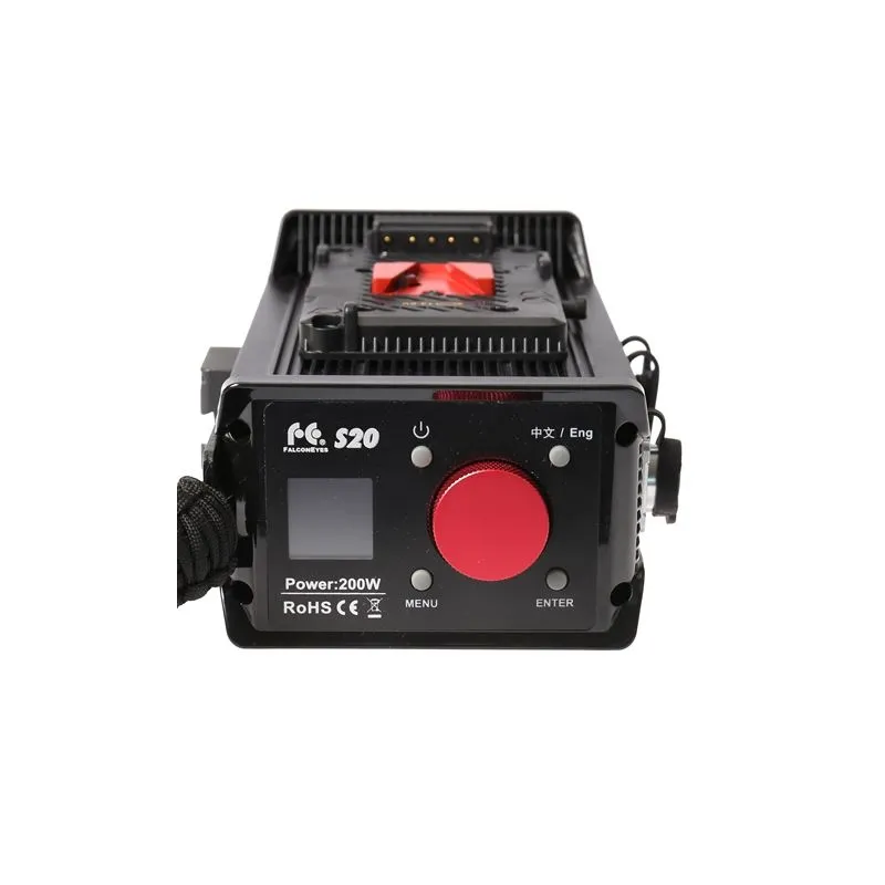 The S20 from Falcon Eyes is a powerful, modern bi-color LED spotlight for the professional and demanding user. The power-LED has a capacity of 200 Watts and delivers a lux-value of no less than 200,000 at half a meter. You can adjust the lamp in terms of power, use pre-programmed theme effects and control it remotely with your smartphone.