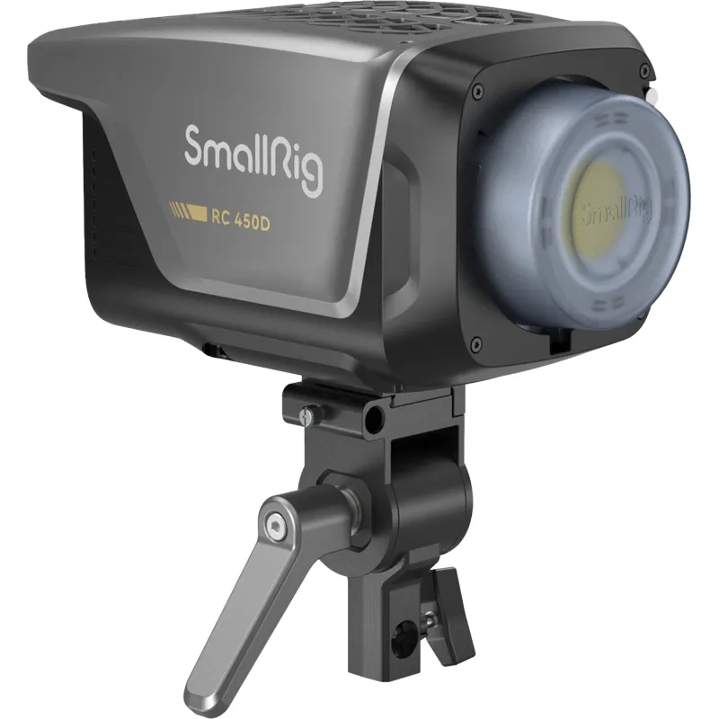 SmallRig RC 450D, SmallRig’s new generation of powerful COB LED video light, employs the “Dharma Shark” optical system with a 55-degree hyper reflector to realize 172,000Lux (1m) and rivals 1.2K HMI Par when working with a 55-degree hyper reflector at the beam angle tested at 5m distance. It features CRI 96+ and TLCI 97+ for accurate color rendering and reproduction, outperforming predecessors, a GaN (Gallium Nitride) adapter that allows for power efficiency of at least 95%, as well as a damping head support system to protect the light. This item, made of metal and V-0 non-inflammable material, is 20% lighter and can be controlled by the switch, SmallGoGo App, or control panel (optional). The Bowens mount supports most light-control accessories to create varied lighting effects. Besides, a carrying bag is included for easier storage and transport.