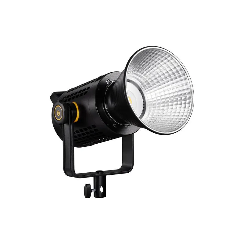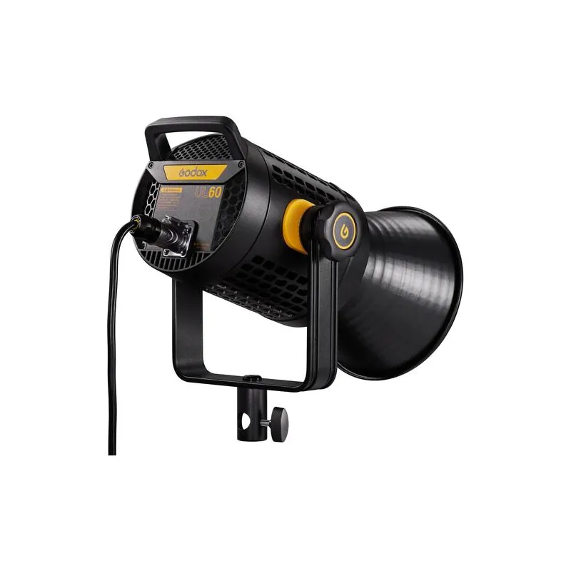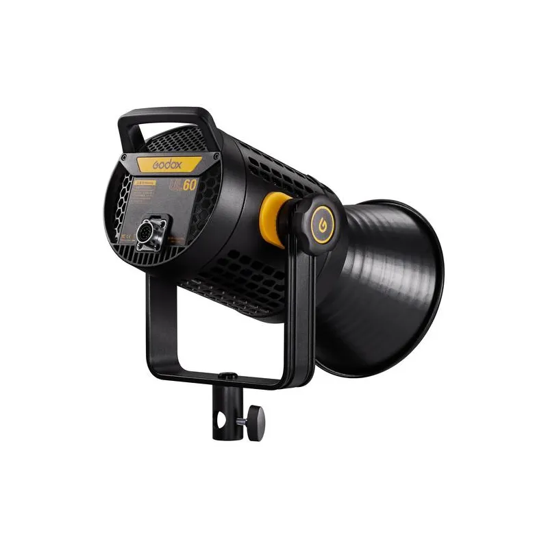 The UL60 Silent LED Video Light from Godox is a daylight-balanced 60W LED light. Designed for sound-recording environments, this versatile light features a fanless cooling design and provides 100% silent operation. Ideal for interviews, online streaming, broadcasting, and cinematography, the UL60 delivers natural-looking light and accurate colors. It has eight built-in presets for flash, storm, TV, and broken bulb lighting effects. There are multiple control methods as well. In addition to making adjustments on the included controller box, the unit is DMX512 compatible. The fixture also provides wireless control over an optional RC-A6 remote, or by using Bluetooth-enabled portable devices with the Godox Light app. The UL60 provides a Bowens S-mount for compatibility with a wide range of accessories, and separately-purchased V-mount battery options allow you to power the light anywhere.