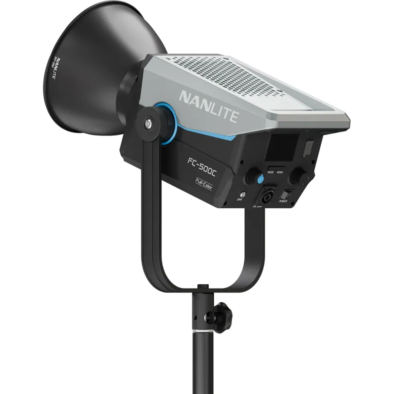 The FC-500C is a high-power, full-color spotlight with a nominal power of 520 W, combining creative color potential with precise light shaping capabilities. It can create a strong narrow beam with reflectors and lenses or a beautiful soft light source when used with softboxes or diffusers.