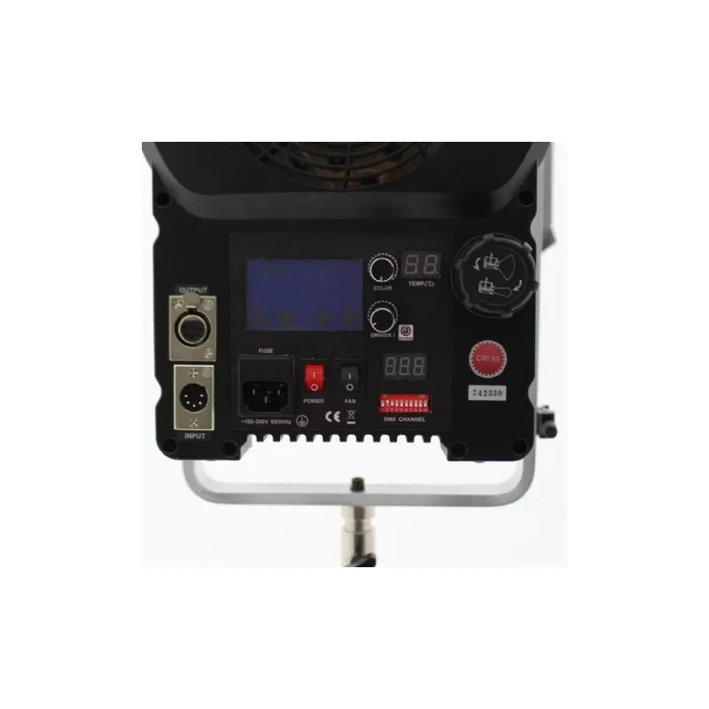The lamp has a 5-pin XLR plug to connect to a DMX panel. This allows you to control the light based on the DMX512 protocol.