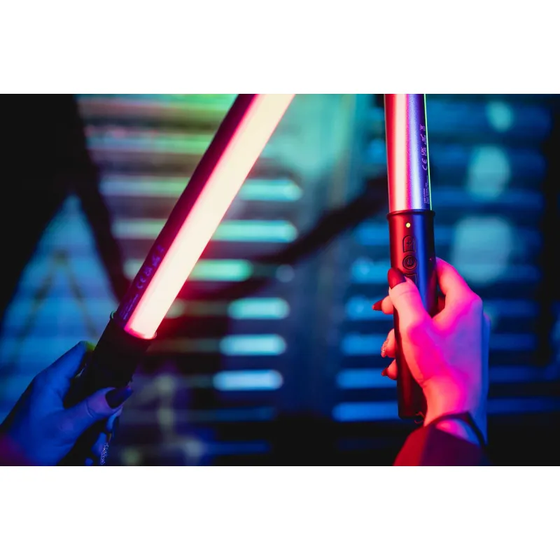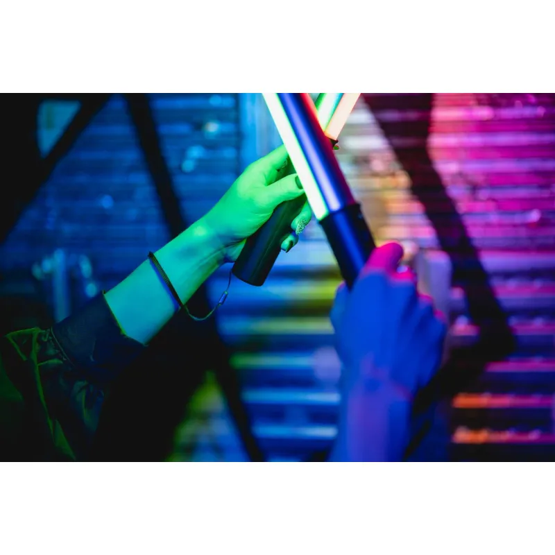 In addition to 100 LEDs that mimic warm or cold light, the Newell Kathi lightsaber also offers 50 RGB leds. With them, your photos and videos can be complemented with colorful glows, flashes and arcs that will give your frames and shots a unique character. Among the available colors you will find red, green, blue, yellow, pink and blue. You can conveniently adjust their intensity and switch between them using the remote control or buttons built into the handle of the lamp.