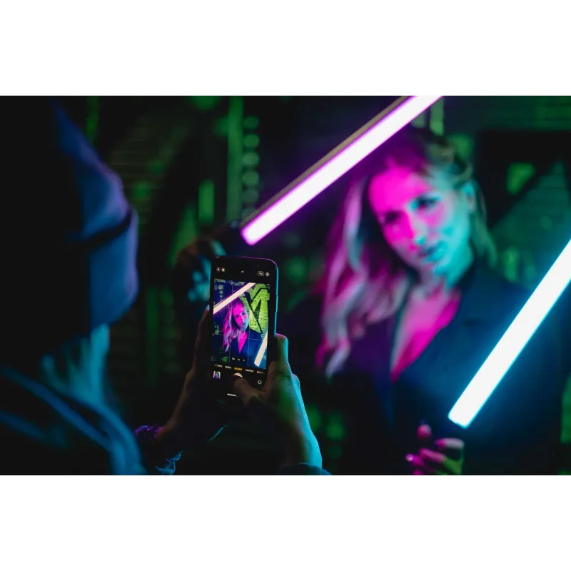The distinctive oblong shape offered by the Newell RGB Kathi LED lamp is a guarantee of great creative freedom. Its lightweight design, comfortable handle, the possibility of remote control via remote control, as well as the option of installation on special brackets will allow you to use it in various situations, while working on films and photos. The lightsaber will be perfect for unconventional games with light, creating unique atmosphere with colors and flashes. The device will also enable effective “light painting”. With Newell RGB Kathi you will open new layers of creativity and create even more interesting photos and videos!