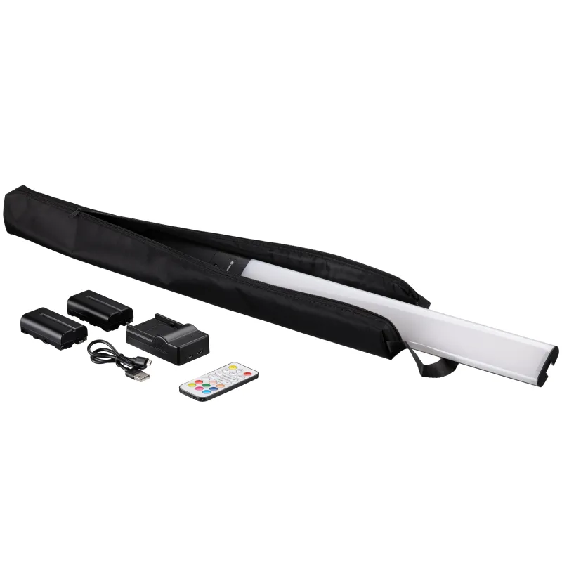 - Incl.: 1x Light stick, 1x Remote control, 1x Charger (8V/3A) with USB cable, 2x NP-F550 battery, 1x Carrying bag