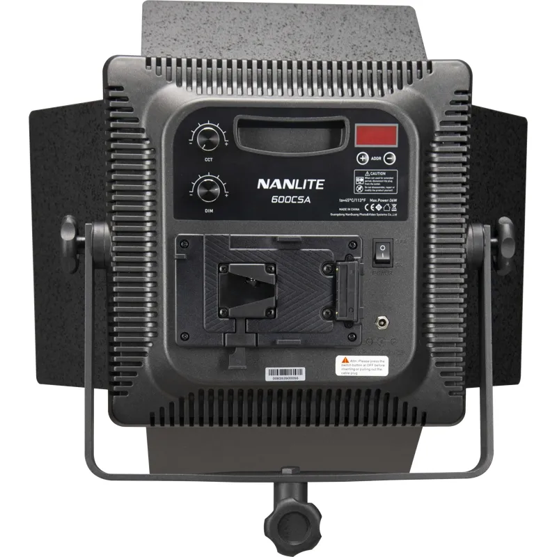 The rear facing controls enable you to dial in brightness from 0-100% and temperature from warm to cold (3200K-5600K). Plus with the included barn doors, the 600CSA's output can be quickly shaped and adjusted.