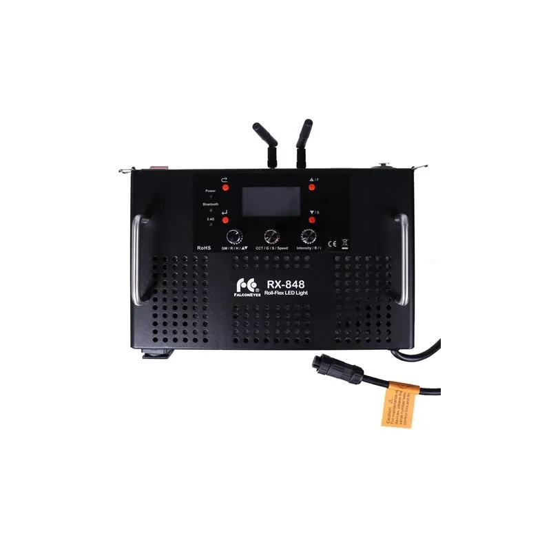 The RX-848 is perfect for any creative photographer or cameraman. The lighting possibilities are endless. Adjust the color temperature based on the ambient light or create a colored glow for extra atmosphere. Because the RX-848 is only 10 mm thick and weighs only a few hundred grams, you can take it everywhere. The supplied case provides safe protection. You will receive a cable to connect the RX-848 to a power outlet. Optional V-mount batteries are also available, which you can find with the optional accessories.