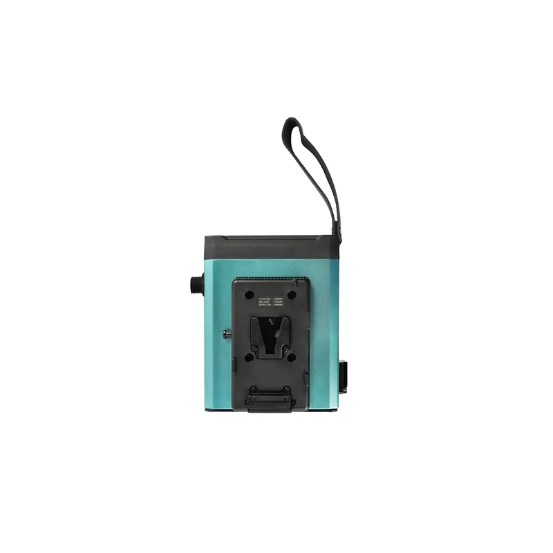 You place 1 v-mount battery on the back of the controller for power. The battery is not included as standard, but it is available as an optional accessory. Of course, it is also possible to connect the A200B to a power outlet. An EU power cable is included for that purpose. But actually you use the lamp worldwide. Because the input accepts 100-240v. No separate inverter is needed, as it is built into the controller.