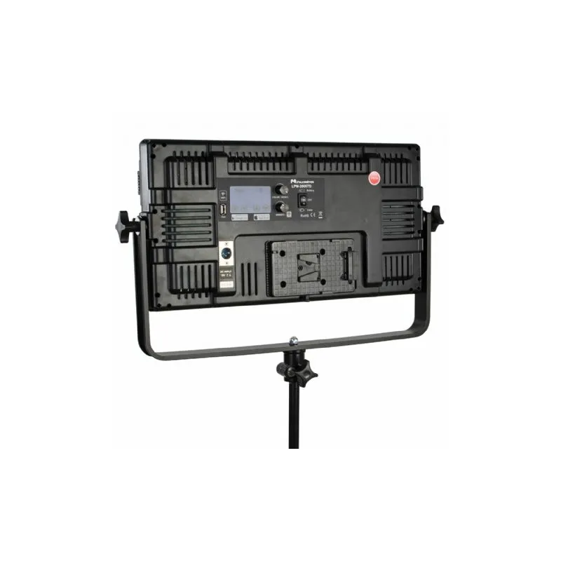 The Falcon Eyes Wi-Fi LED Lamp LPW-2005TD is a dimmable LED lamp (100W). The panel has 200 small LED lights, which generate a color temperature of 3000 up to 8000K. The lamp can be operated with the control panel at the back of the lamp. The display is provided with a touch screen, which makes the lamp easy to control. You can use the lamp via AC power, but also with an optional battery.