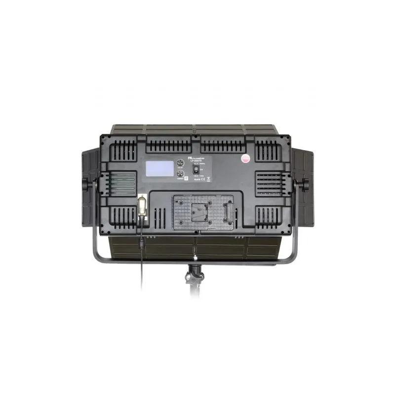 The Falcon Eyes Wi-Fi LED Lamp LPW-820TD is a dimmable LED lamp (49.2W). The panel has 820 small LED lights, which generate a color temperature of 3000 up to 8000K. The lamp can be operated with the control panel at the back of the lamp. The display is provided with a touch screen, what makes the lamp easy to control. You can use the lamp via AC power with the supplied power supply (15V 7A), but also with an optional V-mount battery.
