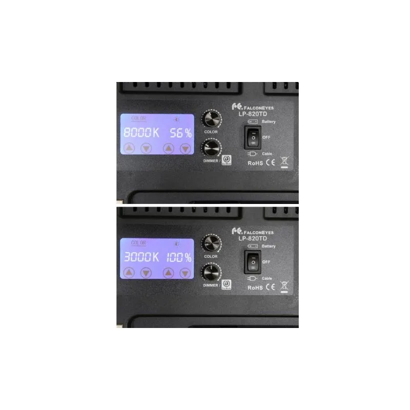 This complete Falcon Eyes Bi-Color LED Kit LP-820TD includes two dimmable Falcon Eyes Bi-Color LP-820TD LED Lamps and two Falcon Eyes W806 Light Stands.